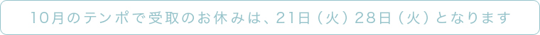即日配送・店舗受取・デリバリーのお休み /10月21日・28日